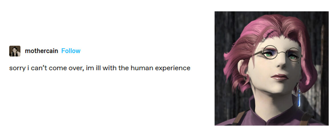 Originally hailing from Tyneside in Northeastern England, Berenice was reincarnated in the body of a Viera following a sudden, fiery demise that tore her from a life of luxury.Unfortunately, Hydaelyn's newest champion has no interest in being the Warrior of Light, choosing instead to vent her frustrations on fellow adventurers in the Palaistra.